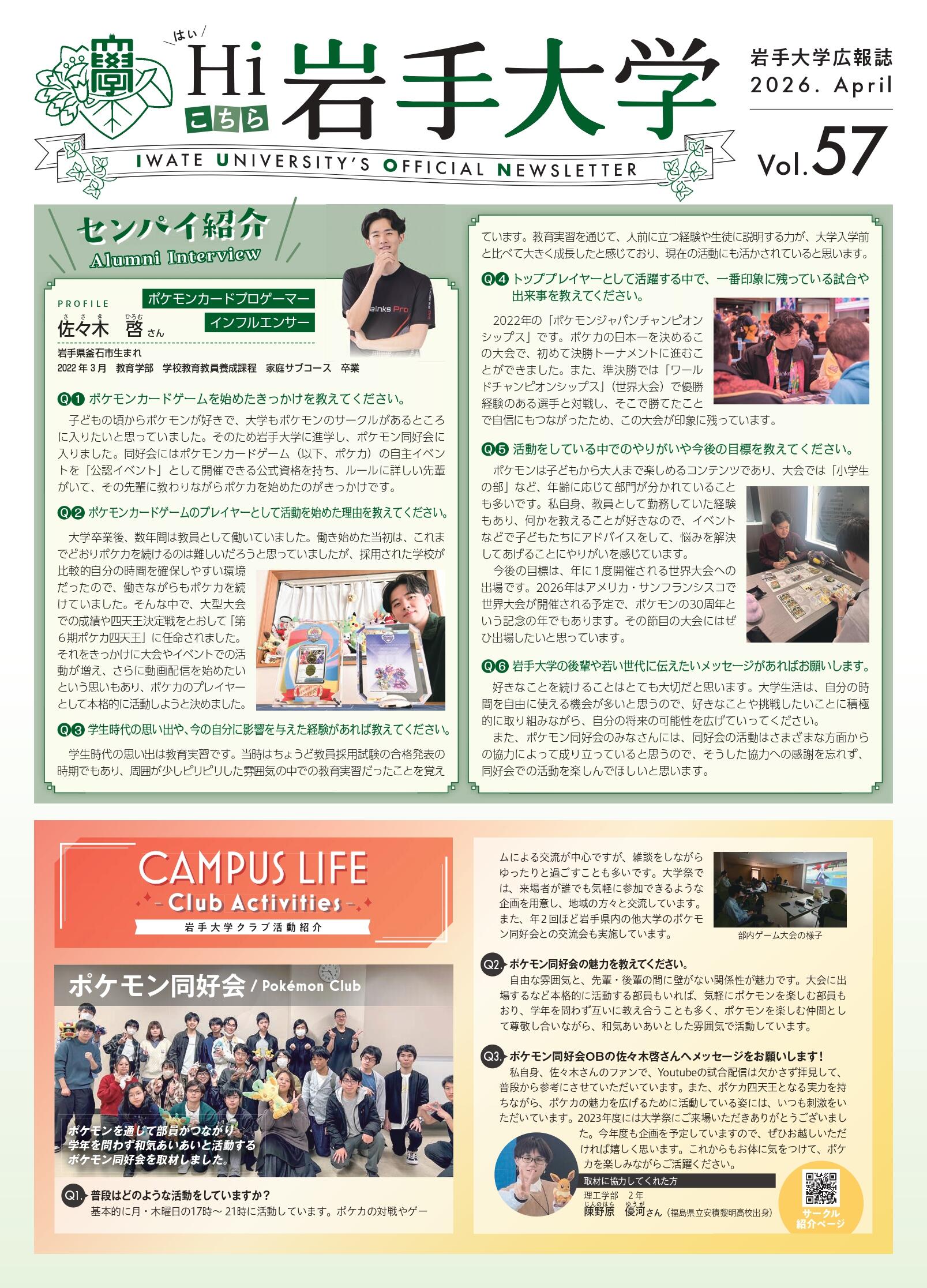 岩手大学の魅力を満載したタブロイド版広報誌です。キャンパスライフ、研究紹介、OB紹介やTOPICSなど、どなたでも楽しんでいただける内容です。
