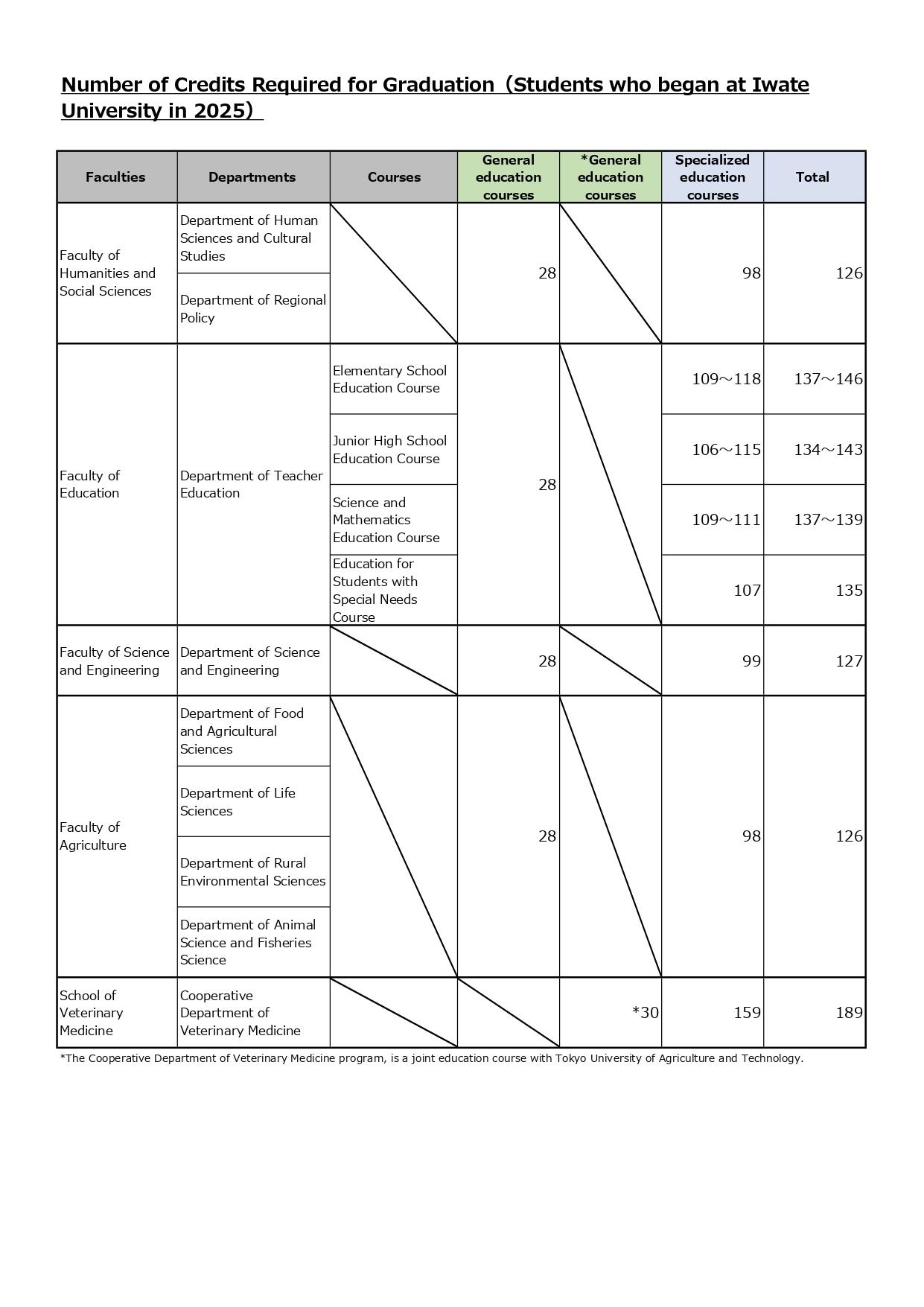 *The Cooperative Department of Veterinary Medicine program, is a part of the Faculty of Agriculture, is a joint education course with Tokyo University of Agriculture and Technology.