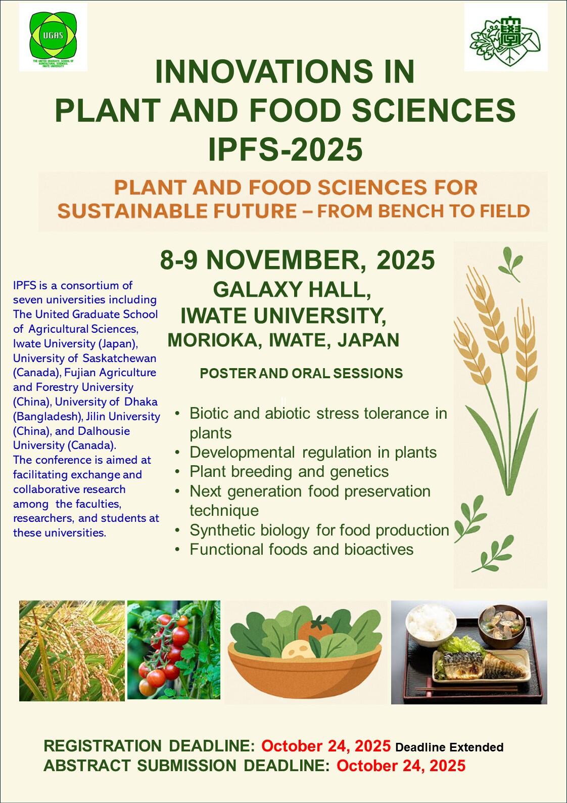 岩手大学大学院連合農学研究科は、この度国際シンポジウム「Innovations in Plant and Food Sciences IPFS-2025」を開催いたします。