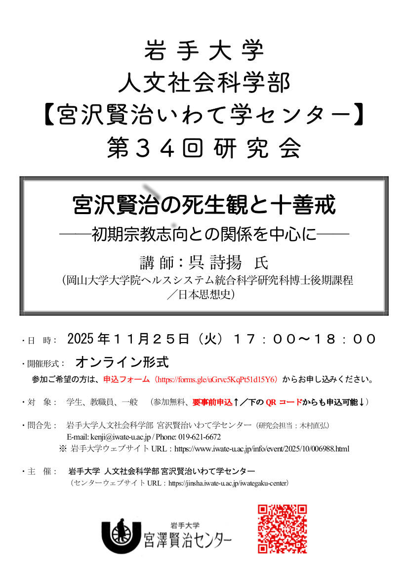 岩手大学 人文社会科学部 宮沢賢治いわて学センター 第34回研究会