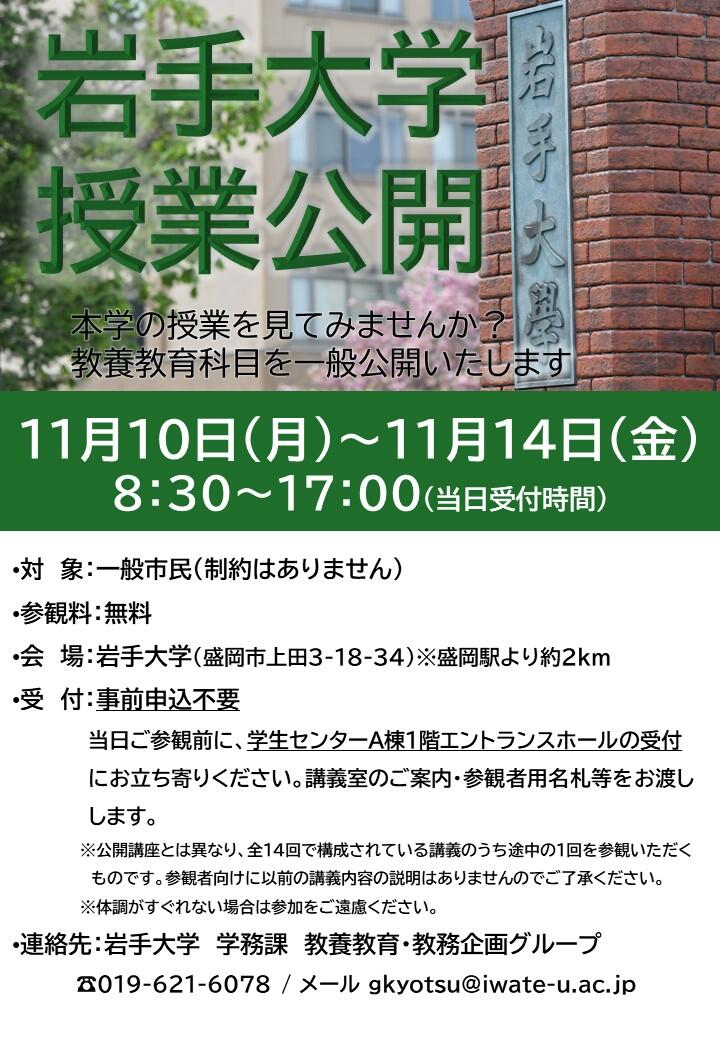 この機会にぜひ岩手大学へお越しいただき、授業をご参観くださいますようお願い申し上げます。