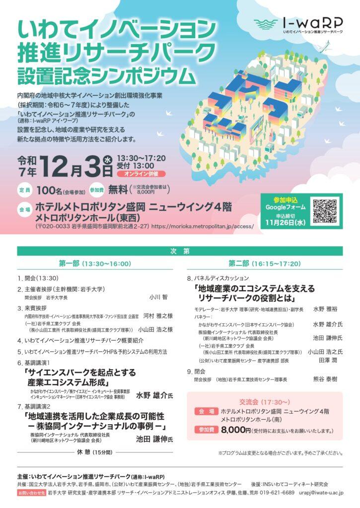 主催:いわてイノベーション推進リサーチパーク(通称:I-waRP)