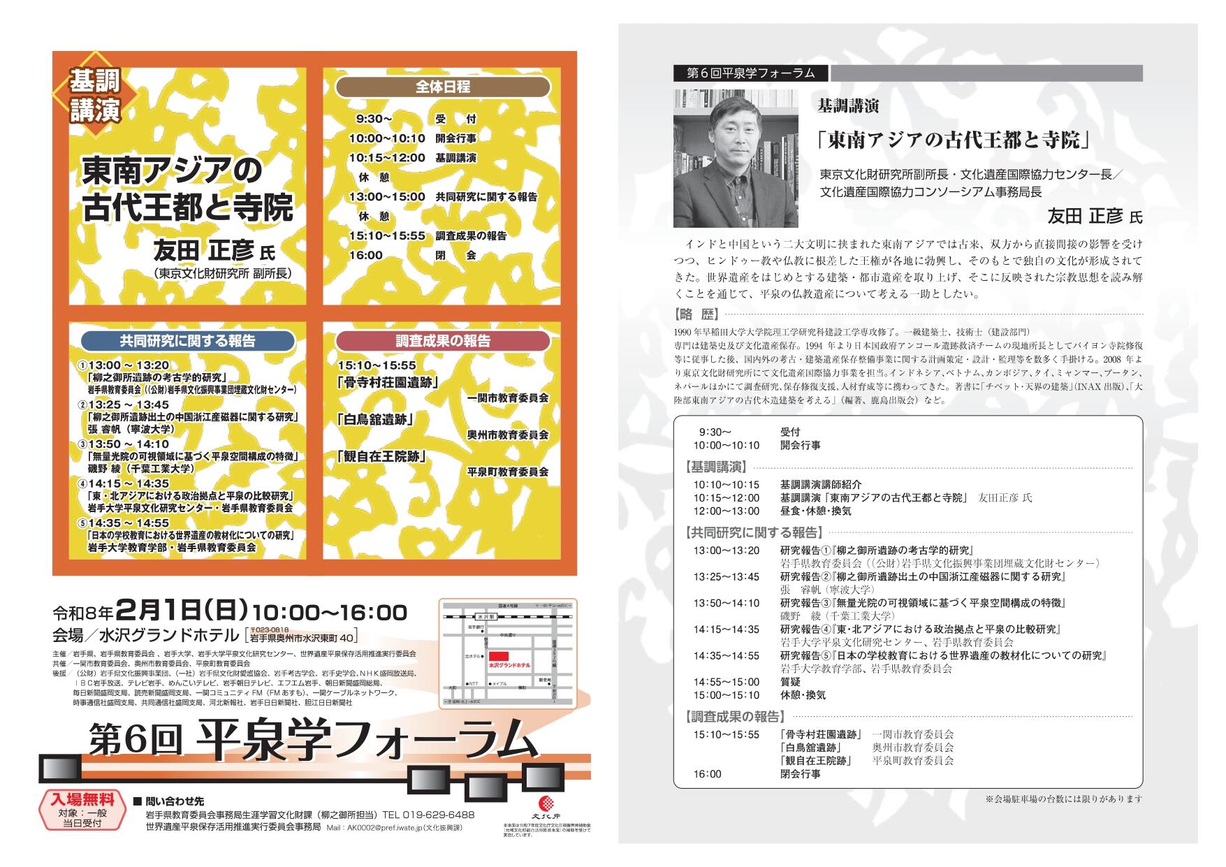 このたび、研究成果について広く一般の方にも公開する目的で、第6回平泉学フォーラムを開催することとなりました。