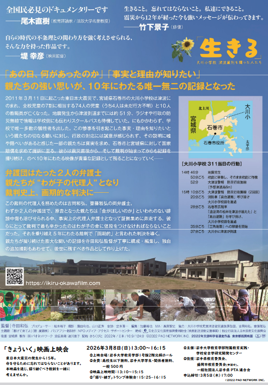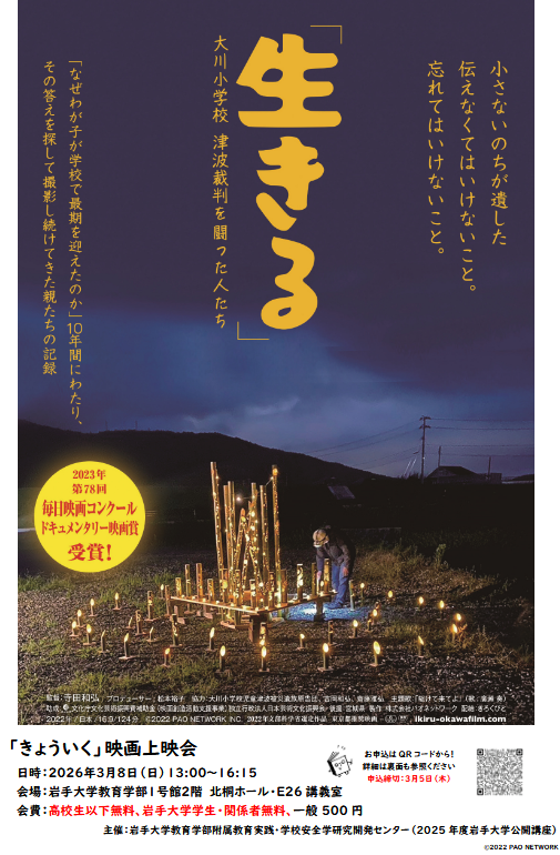 教育学部附属教育実践・学校安全学研究開発センターでは、「きょういく」映画上映会を開催いたします。