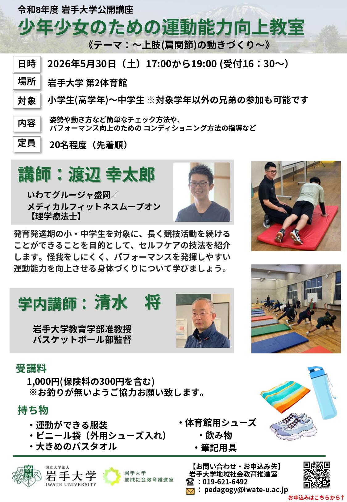 発育発達期の小学生(高学年)~中学生を対象に、長く競技活動を続けることができることを目的として、セルフケアの技法を紹介します。怪我をしにくく、パフォーマンスを発揮しやすい運動能力を向上させる身体作りについて学びましょう。