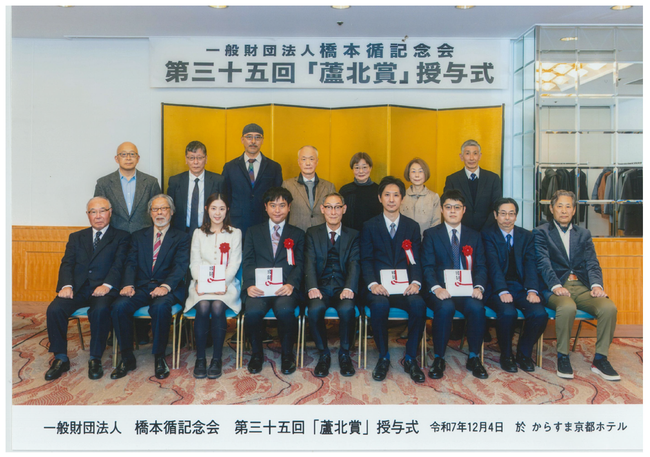 2025年12月4日、からすま京都ホテルで行われた授与式において、教育学部 国語教育科の金 鑫 准教授が第三十五回「蘆北賞」奨励賞を受賞しました。