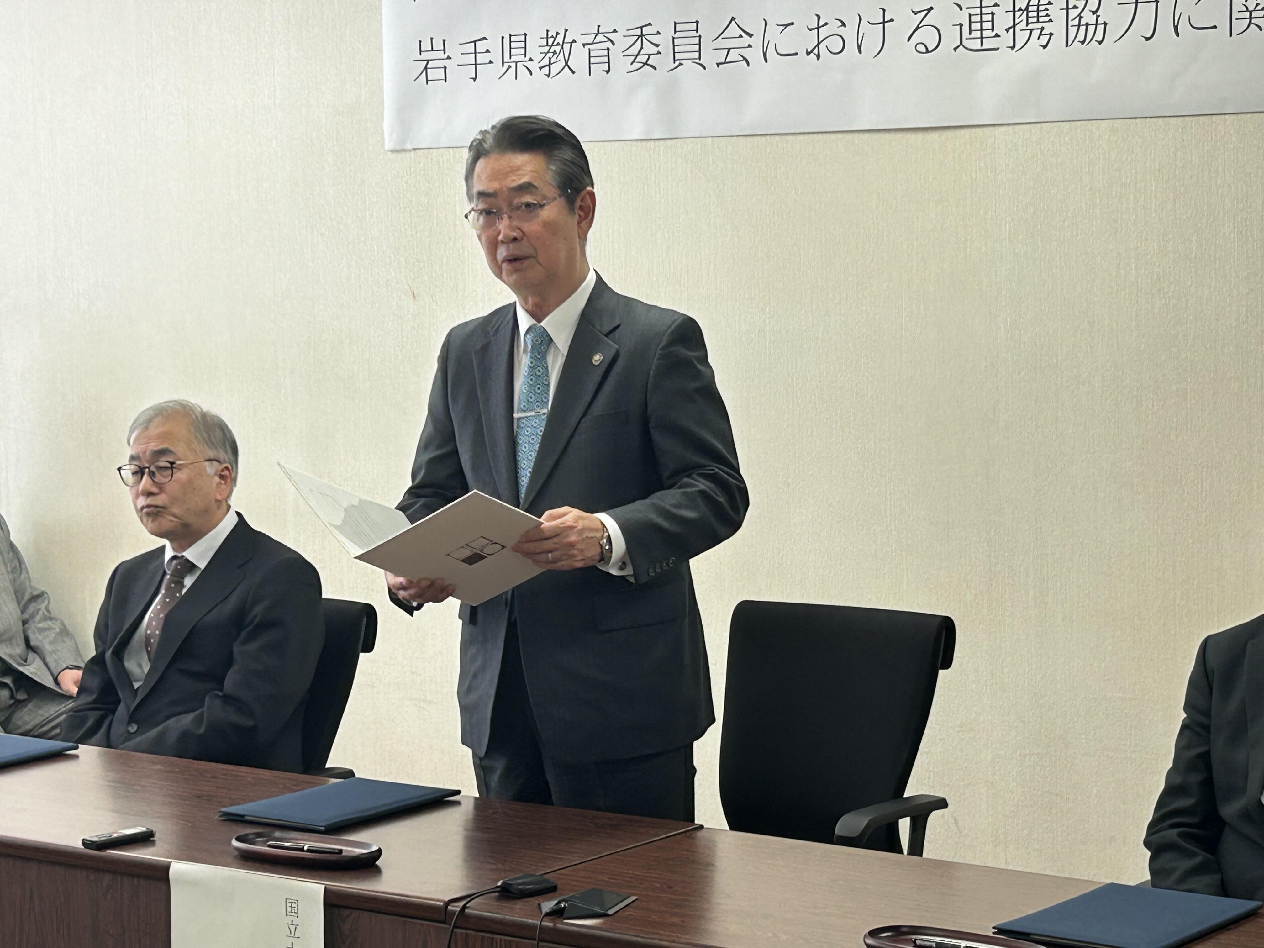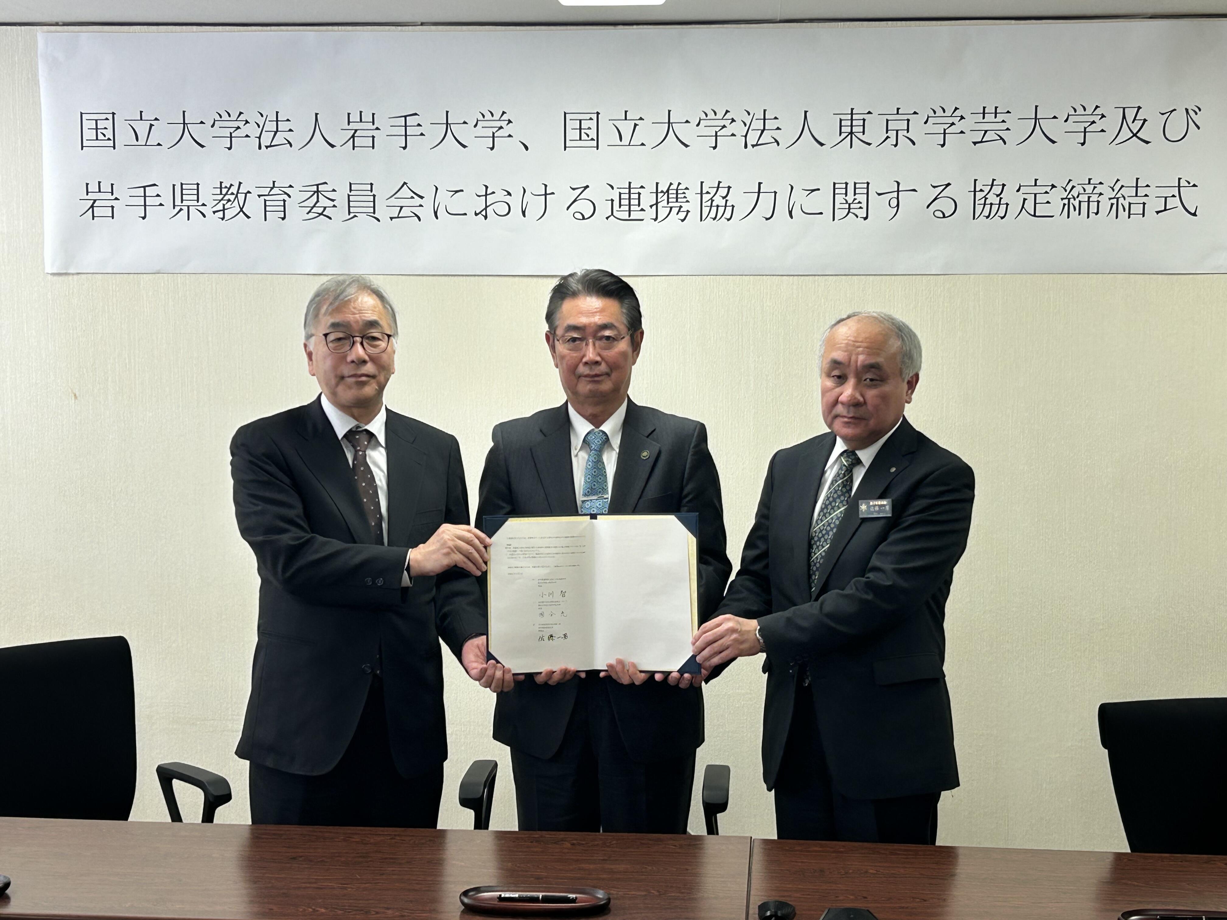 本学は、このたび教育分野におけるICT・データ・AIの利活用を通じた教育政策・教育実践の高度化を図ることを目指し、国立大学法人東京学芸大学及び岩手県教育委員会と三者による連携協力協定を令和8(2026)年2月3日に締結しました。