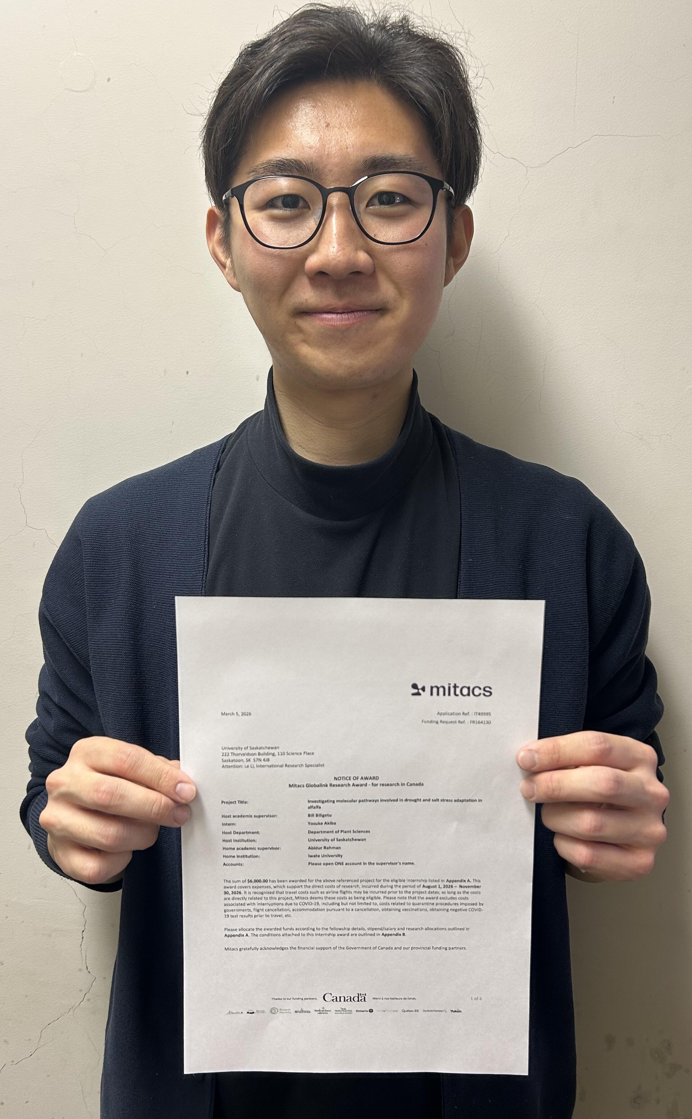 岩手大学大学院農学専攻 植物生命科学コース(ラマン・アビドゥール教授研究室)修士課程1年の秋葉陽介さんが、カナダ政府が支援する「Mitacsフェローシップ」を受賞しました。本フェローシップは、6,000カナダドル(CAD)相当の支援が行われるものです。