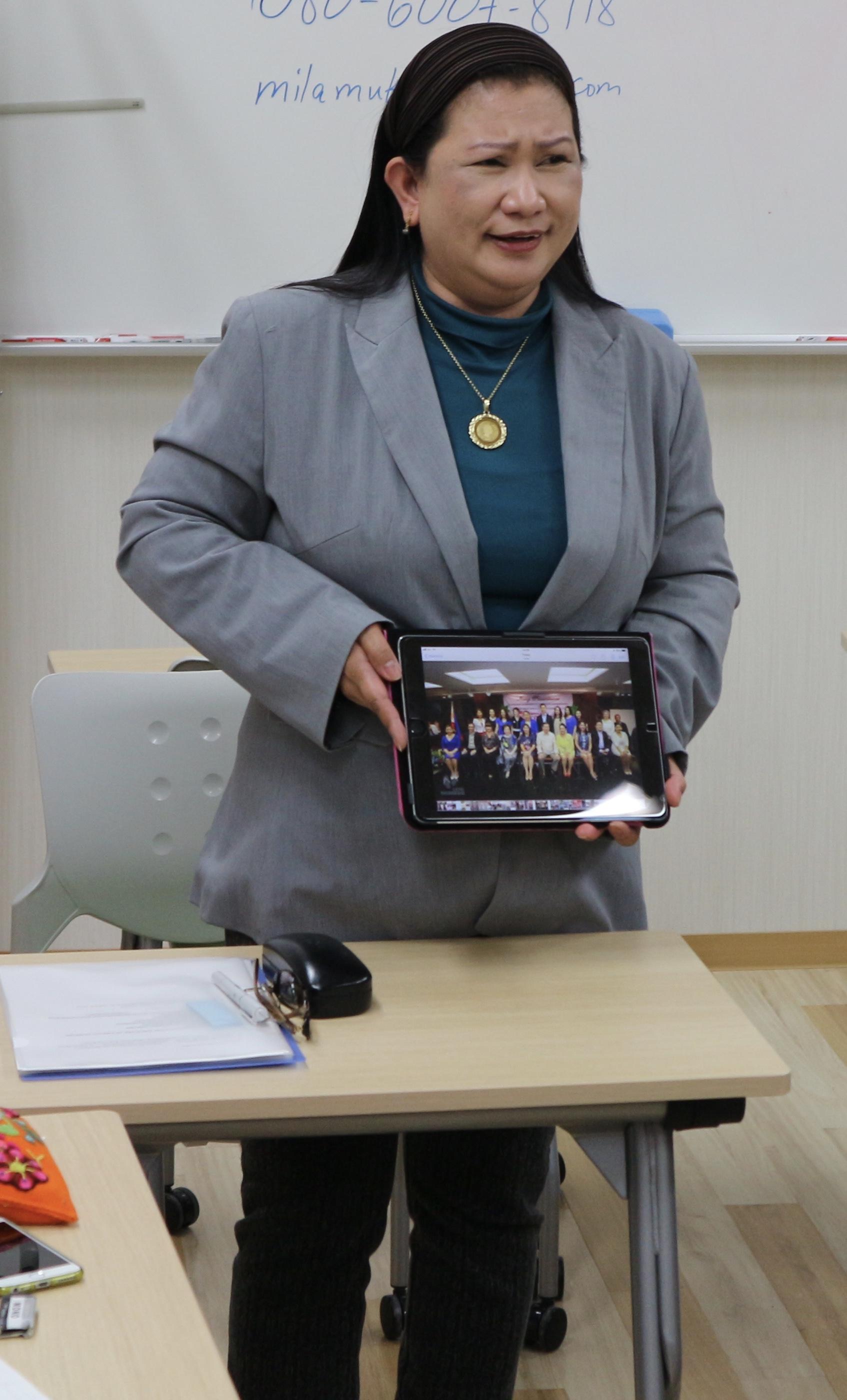 12月7日はFounder and Chairperson of SP-PAIJ Filipino Community in Iwateの創始者であり議長でもある Mila Mukaiさんが日本での生活や、どのようにして日本と海外のコミュニティのための活動を支援してきたかについてお話してくださいました。お話を受けて、学生からMukaiさんへ様々な質問もされました。