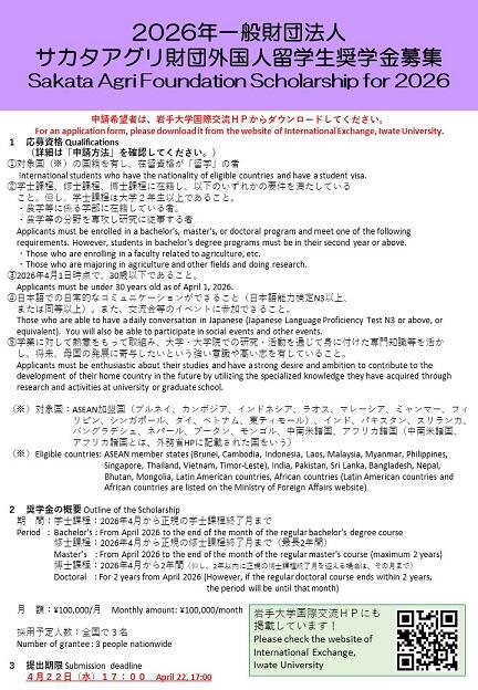 【財団HP】https://sakata-agriculture.or.jp/scholarship/