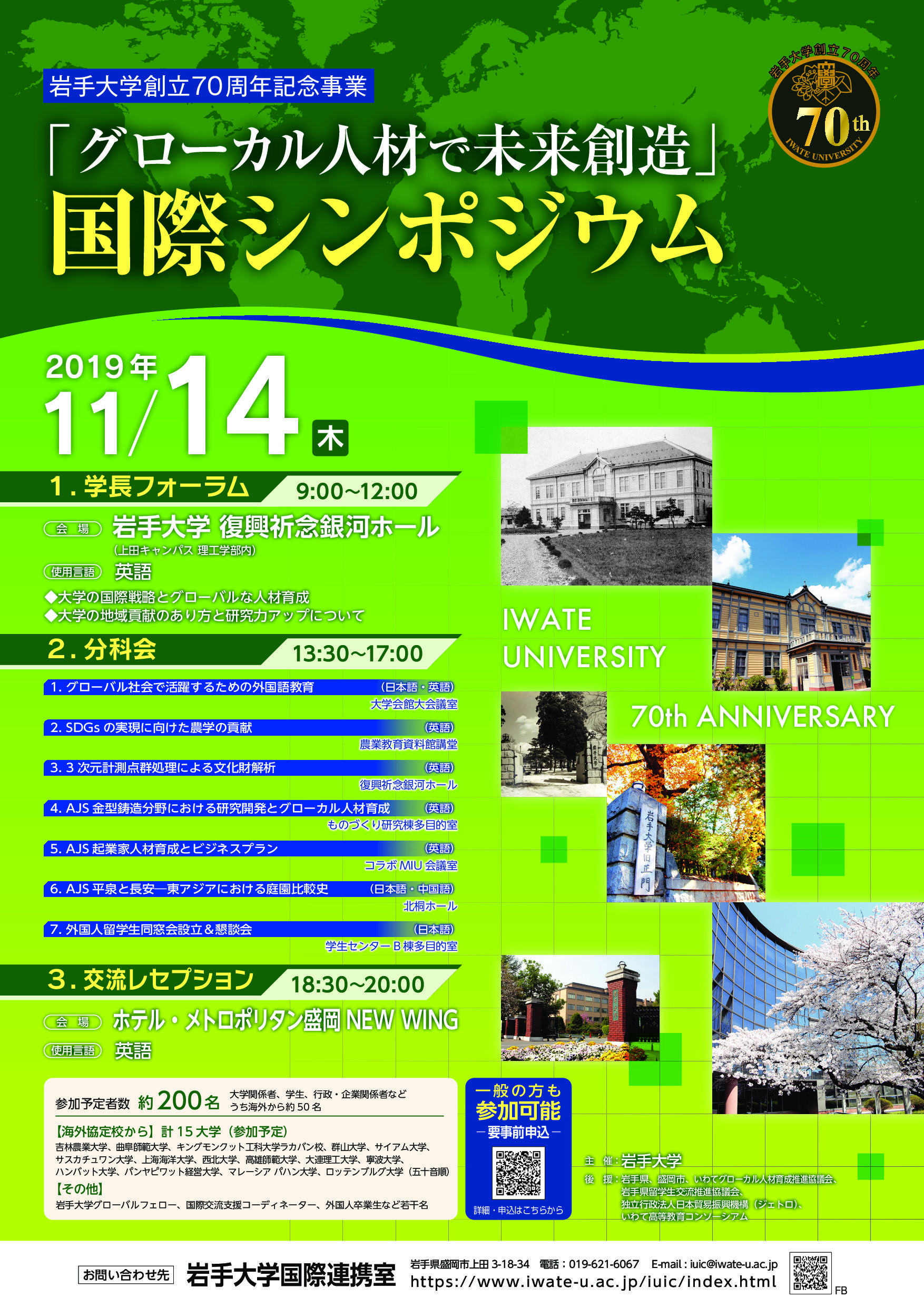 岩手大学創立70周年記念事業「グローカル人材で未来創造」国際シンポジウム開催について